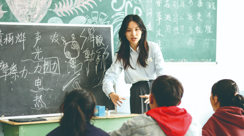 “天空之城”團隊成員為孩子們授課。