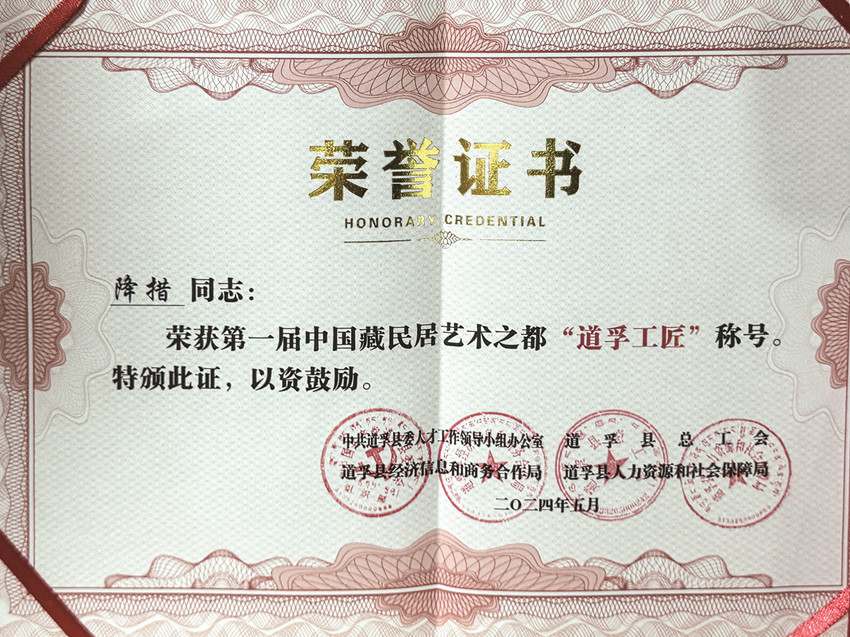 降措榮獲“康巴匠人”證書。