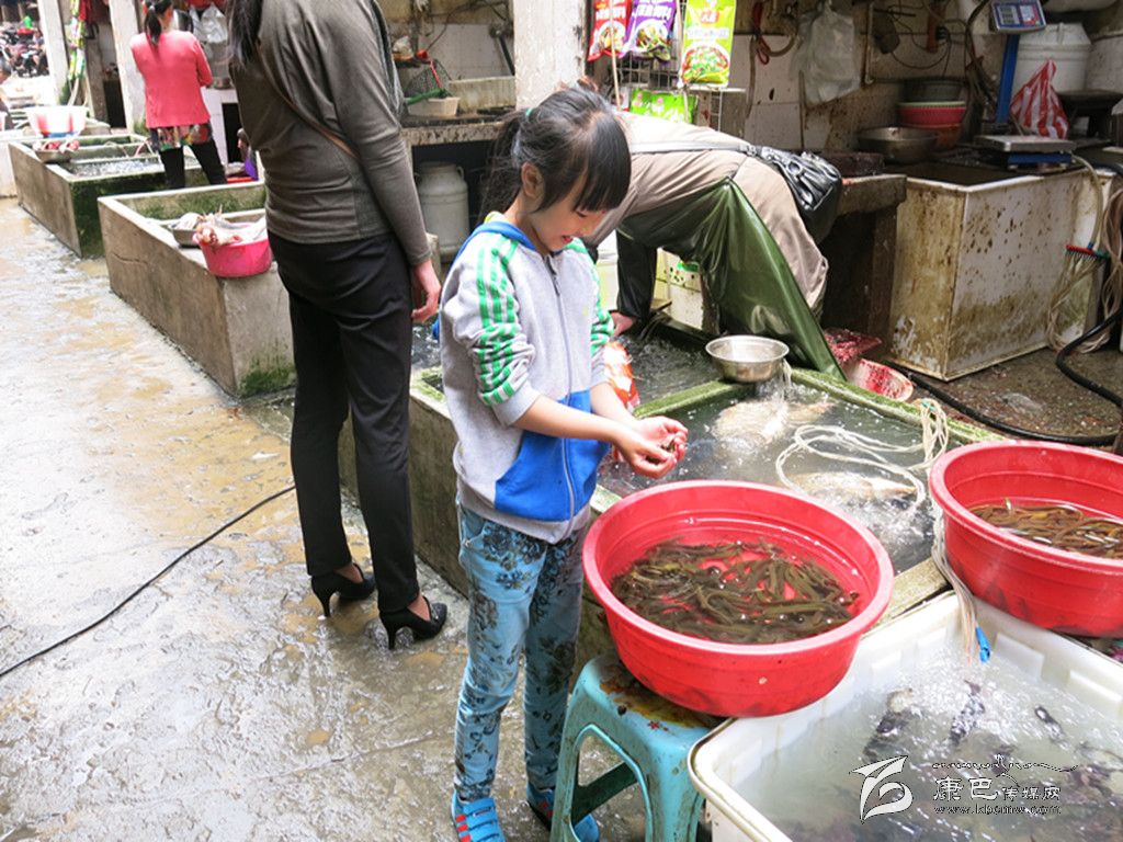 二年級學(xué)生露露,嫻熟地幫助父親售賣鱔魚。