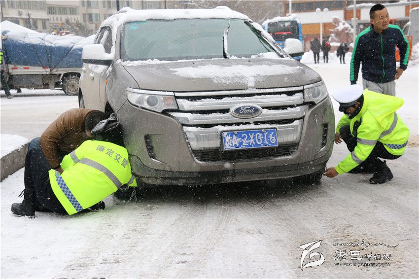 康定交警大隊(duì)城區(qū)中隊(duì)的扎西澤仁立即走上前去詢問:“前面更滑,你肯定上不去,有沒有鏈條?”車主譚光復(fù)隨即下車答道:“有,可是不會上。”