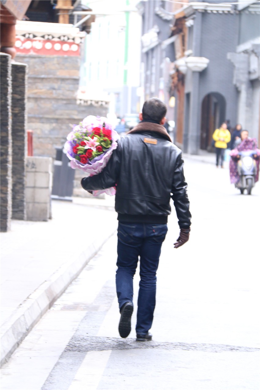 愛(ài)神阿佛洛狄特為了追尋情人阿多尼斯,在玫瑰花叢中奔跑,被花刺刺傷,白色的玫瑰花因其血液浸染從此變成紅色的故事,玫瑰便成了愛(ài)情的象征和傳情的首選信物?,F(xiàn)在,用一束精心挑選的玫瑰向心愛(ài)的那個(gè)她表達(dá)濃烈、深沉的情意已是康定人過(guò)情人節(jié)的重要元素。微風(fēng)中、花店里,那一束束繽紛燦爛的玫瑰,不僅承載著花店老板的經(jīng)濟(jì)收入,更承載著眾多男女的愛(ài)情收獲,儼然是最鮮明的節(jié)日符號(hào)。而玫瑰花必不可少的“搭檔”便是一張泣血陳“情”的賀卡,而寫(xiě)賀卡最佳姿勢(shì)恐怕應(yīng)該是單膝跪地。