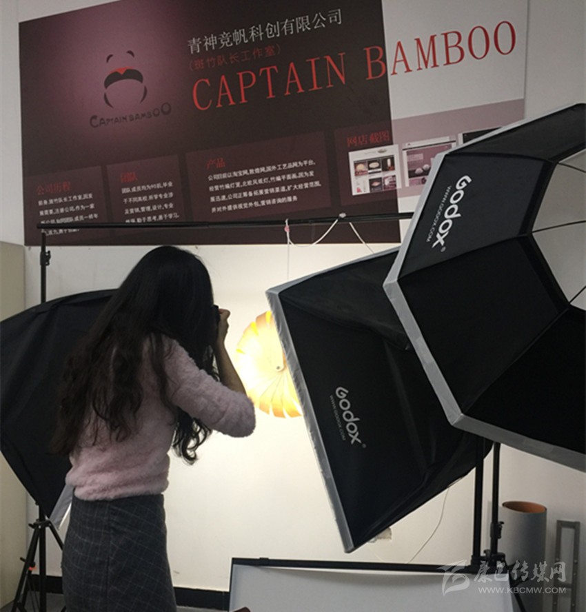 在青神,電商服務(wù)中心工作人員正在拍攝電商產(chǎn)品。