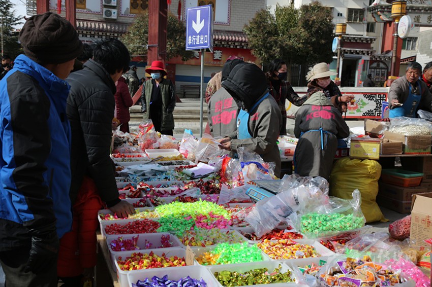 來自甲斯孔鄉(xiāng)的布珠說,年貨買得差不多了,這次不準(zhǔn)備買年貨了,“但這集市很有味道,不買東西來湊湊熱鬧也安逸。”像布珠大哥一樣,很多附近村子的人來趕集,主要是“湊熱鬧”,這接地氣、有鄉(xiāng)土味、有民族風(fēng)的農(nóng)村集市成了大家的休閑空間。