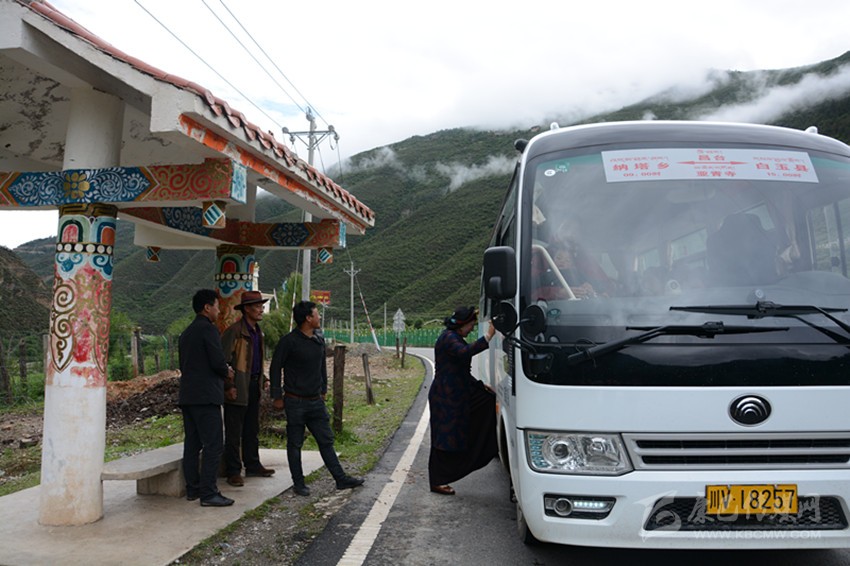 “加洛,快點(diǎn)喲,公交車(chē)要開(kāi)了?!?/span>6月25日8時(shí)56分,在白玉縣農(nóng)村公交車(chē)納塔始發(fā)點(diǎn),記者看到坐上農(nóng)村公交車(chē)的白玉縣納塔鄉(xiāng)納塔村村民俄洛招呼著鄰居加洛。