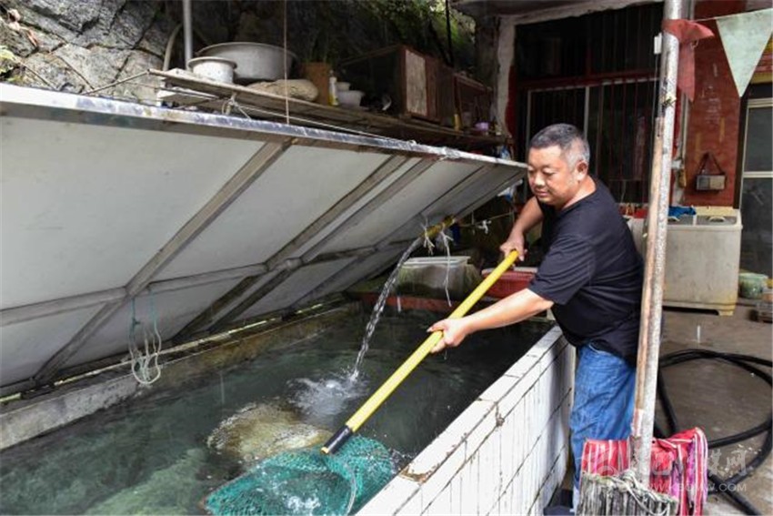 在各方幫扶下,2015年,朱國富借了10多萬元,在家門口開起了“黑灣魚莊”。農(nóng)家樂開起來了,日子又開始紅火起來。