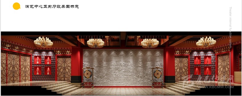 藏式繪畫、門板藏式浮雕造型、藏式鼓架、展示康定城的浮雕........記者看到,效果圖中農牧民演藝中心的設計充滿了“傳統文化”的味道。頂部設計利用了線條的柔韌性和律動性,使空間更有線條感,看起來像康定的潺潺河流,墻面分別使用樂器、山巒疊成的變化形式,營造出獨特的民族風情。通過自熱和人文的結合展示出康定人民樂觀向上、民族團結的和樂畫面。地面設計采用了暖(冷)色座椅與富有民族特色的色彩搭配,營造出一種身處藏家,暢游藏文化海洋的意境。