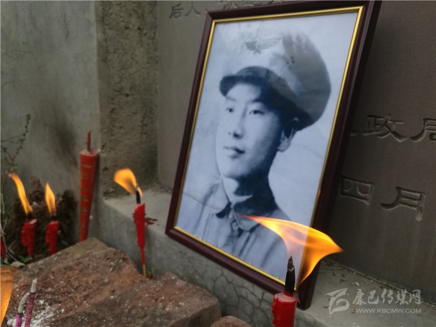擺上遺像,按照民間習(xí)俗插上香燭、燃起紙錢,火光映照下,身著軍裝的烈士張世光英氣逼人。膝頭沉重跪下,頭顱深深觸地,烈士張世光的侄子張會(huì)臣早已泣不成聲:“大伯,我來看您了;爸爸身體不好不能來了,他讓我告訴您,我們想您啊,想了67年??!”