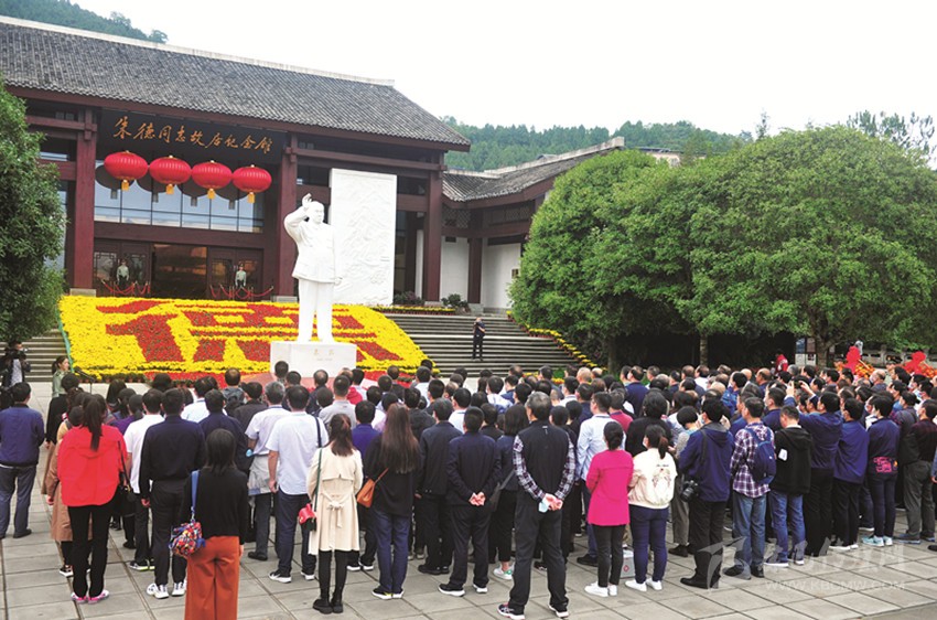 站在朱德同志漢白玉像前,《江蘇國信》雜志綜合部主任倪劍萍沉思良久。他說:“我從小就聽長輩們說起朱德同志一生的事跡,今天第一次來到這里,再一次深切緬懷老一輩無產(chǎn)階級革命家的豐功偉績,讓我感受頗深?!蹦邉ζ颊J為,要繼續(xù)深入挖掘儀隴紅色旅游資源,傳承紅色基因,教育下一代要學(xué)習(xí)老一輩革命家朱德總司令始終堅持共產(chǎn)主義信念、永遠忠誠于黨和人民事業(yè)的崇高精神。