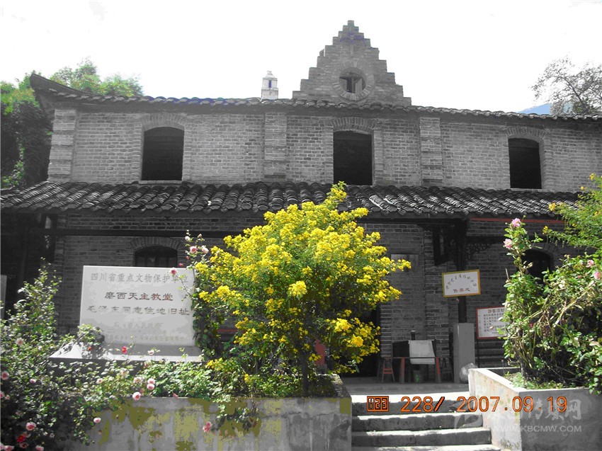 圖為毛澤東住宿地舊址--瀘定縣磨西鎮(zhèn)天主教堂。1935年5月29日傍晚,毛澤東同志隨中央紅軍一軍團進入磨西,宿營天主教堂神甫房。