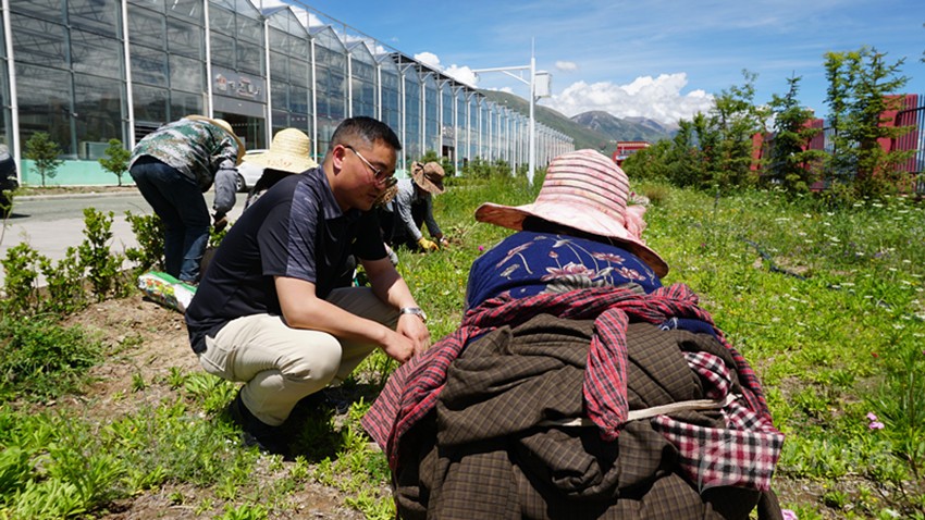 在鄧瑪觀光生態(tài)農(nóng)業(yè)科技示范園,51歲的正科鄉(xiāng)曲德村村民扎西郎加是園區(qū)小有名氣的農(nóng)機(jī)駕駛員?!皫纵吶俗≡谕僚鞣坷?,出門一腳泥,生活一眼望到頭?!痹骼杉幽罴斑^往的日子,總結(jié)為幾個(gè)“沒”——“沒得錢、沒得技術(shù)、沒得未來,繼續(xù)過那種日子的話,可能娃娃長(zhǎng)大也和自己一樣,放一輩子的牛!”