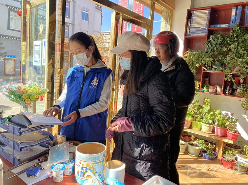 網(wǎng)格員走訪(fǎng)商戶(hù)。
