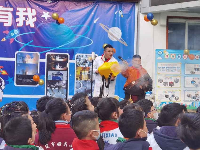 這是回民小學(xué)第三屆校園科技節(jié)活動上的精彩一幕,每年的科技節(jié)都是該校全體師生翹首以盼的“重頭戲”。今年的科技節(jié)以“逐夢九天,強國有我”為主題,由康定市教體局、康定市科協(xié)主辦,回民小學(xué)承辦,希望學(xué)生們能夠在科技實踐、體驗和創(chuàng)新中把握未來。