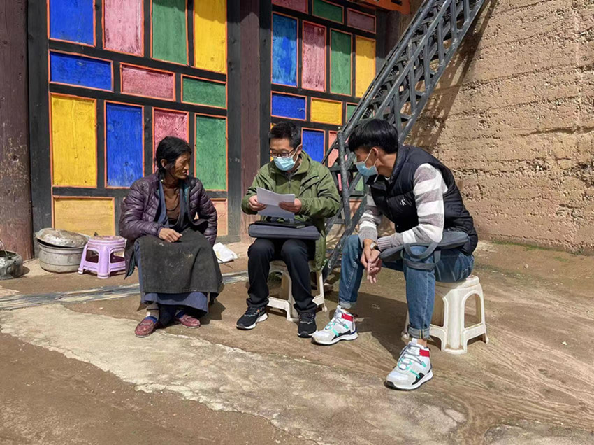 王聰(中)走訪村民。