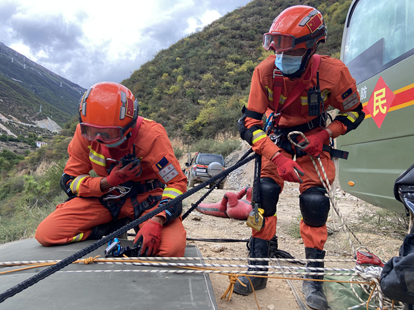 洛絨扎西(右)參加山岳救援訓(xùn)練。