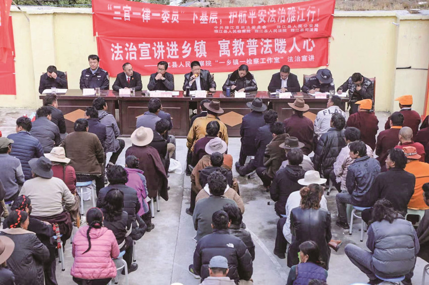 今年來,雅江縣政法系統(tǒng)堅(jiān)持以習(xí)近平新時(shí)代中國特色社會(huì)主義法治思想為指導(dǎo),深入學(xué)習(xí)貫徹習(xí)近平新時(shí)代中國特色社會(huì)主義思想主題教育會(huì)議精神,秉著“基層強(qiáng)則國家強(qiáng),基層安則國家安”的原則,以“三不”(矛盾不上交、平安不出事、服務(wù)不缺位)、“三少”(矛盾糾紛、越級上訪,到省進(jìn)京上訪人員減少)、“三降”(群體性事件、“民轉(zhuǎn)刑”案件、公共安全事件下降)、“三升”(群眾安全感、獲得感、幸福感上升)為目標(biāo),結(jié)合“三官一律一委員”下基層,深化新時(shí)代“楓橋經(jīng)驗(yàn)”,落實(shí)“四下基層”工作制度,在構(gòu)建新安全格局的同時(shí),大力推進(jìn)市域社會(huì)治理現(xiàn)代化工作走深走實(shí)、主題教育入腦入心?!叭僖宦梢晃瘑T”下基層在雅江各地已悄然生根,他們宣傳法律政策、化解矛盾糾紛、關(guān)愛留守兒童、監(jiān)督違法亂紀(jì),成為了雅江縣主題教育活動(dòng)期間一道靚麗的風(fēng)景線。