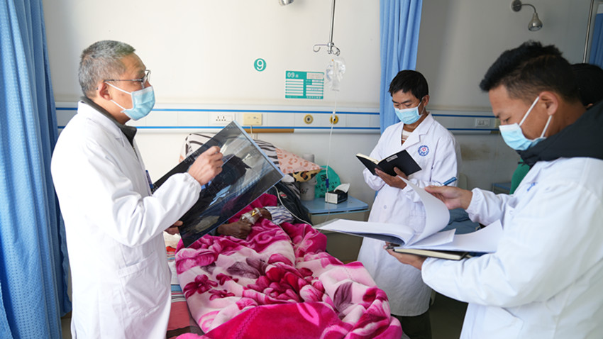 彭勇和彭措是鄉(xiāng)城縣本地的兩名外科醫(yī)生,也是藍(lán)忠榮的“徒弟”。為了提高帶徒效率,藍(lán)忠榮和他倆簽訂了對(duì)口支援“師帶徒”協(xié)議書(shū),明確了個(gè)性化培養(yǎng)目標(biāo)和規(guī)范診療操作內(nèi)容,對(duì)常見(jiàn)病多發(fā)病診治、危重癥急癥處理等相關(guān)知識(shí)進(jìn)行教學(xué)指導(dǎo)。在藍(lán)忠榮的指導(dǎo)下,彭勇和彭措先后掌握了肌腱吻合術(shù)、橈骨骨折整復(fù)、石膏外固定等醫(yī)療技術(shù)。