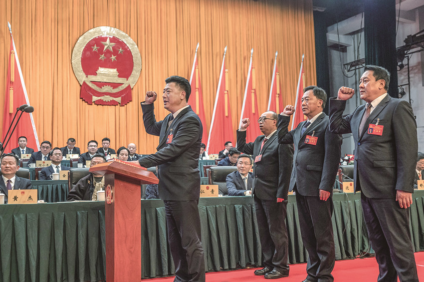 州人大代表認(rèn)真聆聽政府工作報(bào)告。