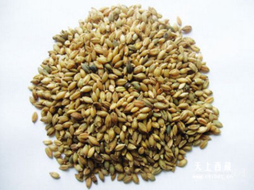 糌粑曾是藏族的主食,形似內(nèi)地的炒面,原料以青棵為主。做法是選好青稞或豌豆、燕麥后淘凈,晾干,炒熟,磨成面粉,磨好后稱為糌粑面,磨得越細(xì)越好。吃糌粑時,根據(jù)各自愛好,還可以放些奶渣或白糖,然后加酥油茶或清茶,中指按逆時針方向反復(fù)揉拌均勻,再用手捏成團(tuán)狀,直接用手往口里送。也有用青稞酒調(diào)糌粑的,做出的“粑”甘甜醇香,別有風(fēng)味。