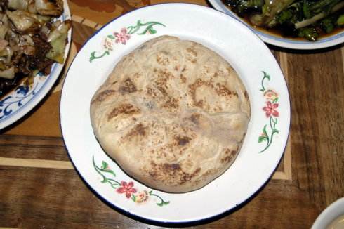 “鍋圈子”是在生鐵鍋里烘洋芋(洋芋用油鹽炒后加水),洋芋之上沿鍋壁貼一圈經(jīng)發(fā)酵后的呈環(huán)狀的面團(tuán),大火烘蒸,蒸出的饃呈環(huán)狀,質(zhì)松且?guī)а笥笙?,底有一層鍋巴?/p>