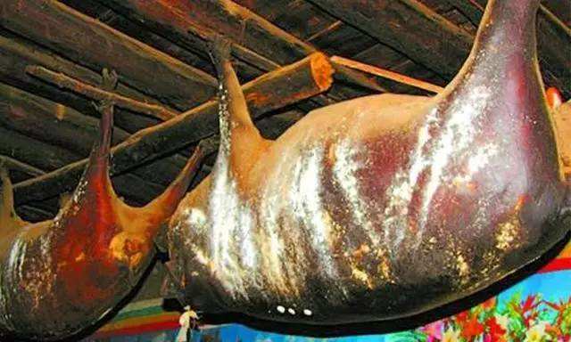 康南則用繩將豬勒死,讓血存于體內(nèi),然后用草點(diǎn)火去毛,于肛門處割一孔,取出內(nèi)臟,用干草或麥子等塞入豬腹內(nèi),用針縫合,縫口處用灶灰摻水?dāng)嚭铣珊芊?,掛在室?nèi),待其發(fā)酵,產(chǎn)生臭味時(shí)食用,稱“臭豬肉”。