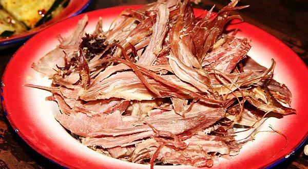 在牧區(qū),多吃“坨坨肉”。將牛羊肉大塊放入鍋中,用大火煮沸,剛過(guò)心即撈起。食用時(shí),手抓、刀削,冷熱皆肉嫩味鮮。也可以利用冬天寒冷氣候?qū)⑷庾匀伙L(fēng)干,切成大塊,用刀削著吃。牧區(qū)還有風(fēng)干牛肉制成牛肉糌粑的習(xí)慣。