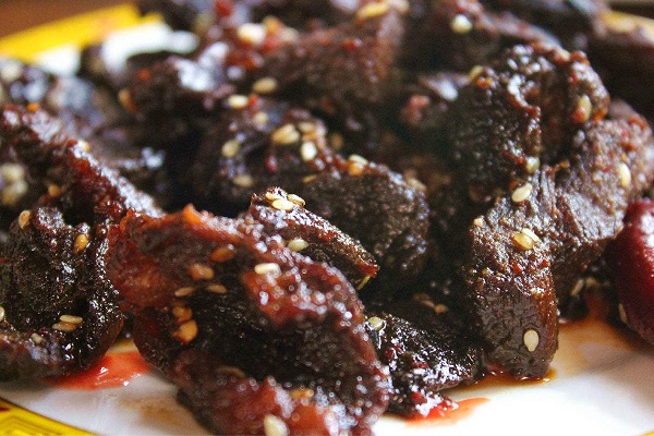 3500米以上地區(qū)這些地方生長(zhǎng)著許多野生藥種如貝母,蟲草等,耗牛常食這些藥材,其肉鮮美無比,殺后可炒紅燒,清燉或涼曬成干巴等,其味獨(dú)特,吃耗牛肉在迪慶,實(shí)在是一種享受。并可在市場(chǎng)購買干巴,肉松等作饋贈(zèng)青朋好友的禮品。牦牛肉可以粘辣椒油,味道仍然鮮美??刀ǖ呐H獠粌H有牦牛肉,還有熏牛肉等等,比起其他康定特產(chǎn)更是別具一番風(fēng)味。