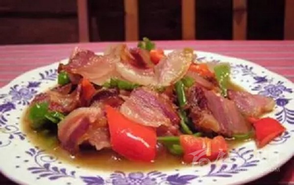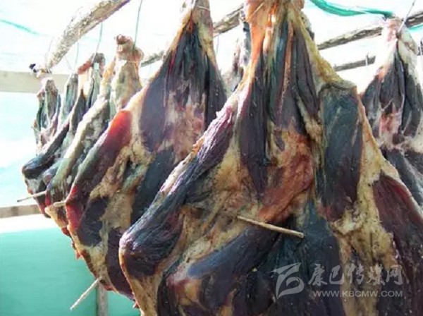 嘉 絨語稱“大古兒”,與香豬腿一樣,豬膘是丹巴的土特產(chǎn)之一。境內(nèi)居住在高山半高山一帶的藏羌群眾家家做豬膘。豬膘就是豬的肥膘做成的,一頭豬砍去四個(gè)“肘 肋”肉,去頭和項(xiàng)圈后,余下的從背梁上剖開,做成兩扇豬膘,在一鍋開水里煮成半熟,取出后,用木棍將其撐開弄直,在露天里凍兩天晚上,待基本成型后掛曬晾干。一般每戶人家在藏房的二樓有固定的房間放肉,在房間內(nèi)搭設(shè)一個(gè)架子,把豬膘平放在架子上,一扇重一扇。家庭富足的每年能積存一定數(shù)量的豬膘,幾年后, 已堆滿一個(gè)房間。豬膘的食用方法各個(gè)地方有所不同,境內(nèi)邊耳鄉(xiāng)一帶一般吃生豬膘,每當(dāng)寨子里有人家蓋房、辦喜事,會(huì)提前做很多火燒子饃饃,切很多塊狀的豬膘;當(dāng)天幫忙的一人發(fā)一個(gè)火燒子饃饃、一塊豬膘肉;豬膘一般不去毛,食用的時(shí)候在滾燙的茶水里浸泡一會(huì)兒,然后用刀將皮毛去掉,然后和著饃饃食用。小金溝 一帶有用豬膘做“墩子”肉(又稱“坨坨肉”)的習(xí)俗,“墩子”肉是“九大碗”中的主菜,其做法是把豬膘切成塊,放上佐料,用文火燉耙,然后一碗一碗舀上桌食用,“登子”肉燉的時(shí)間越長(zhǎng)就越香。境內(nèi)其他一些地方普遍把豬膘煮熟切成片和著饃饃食用。