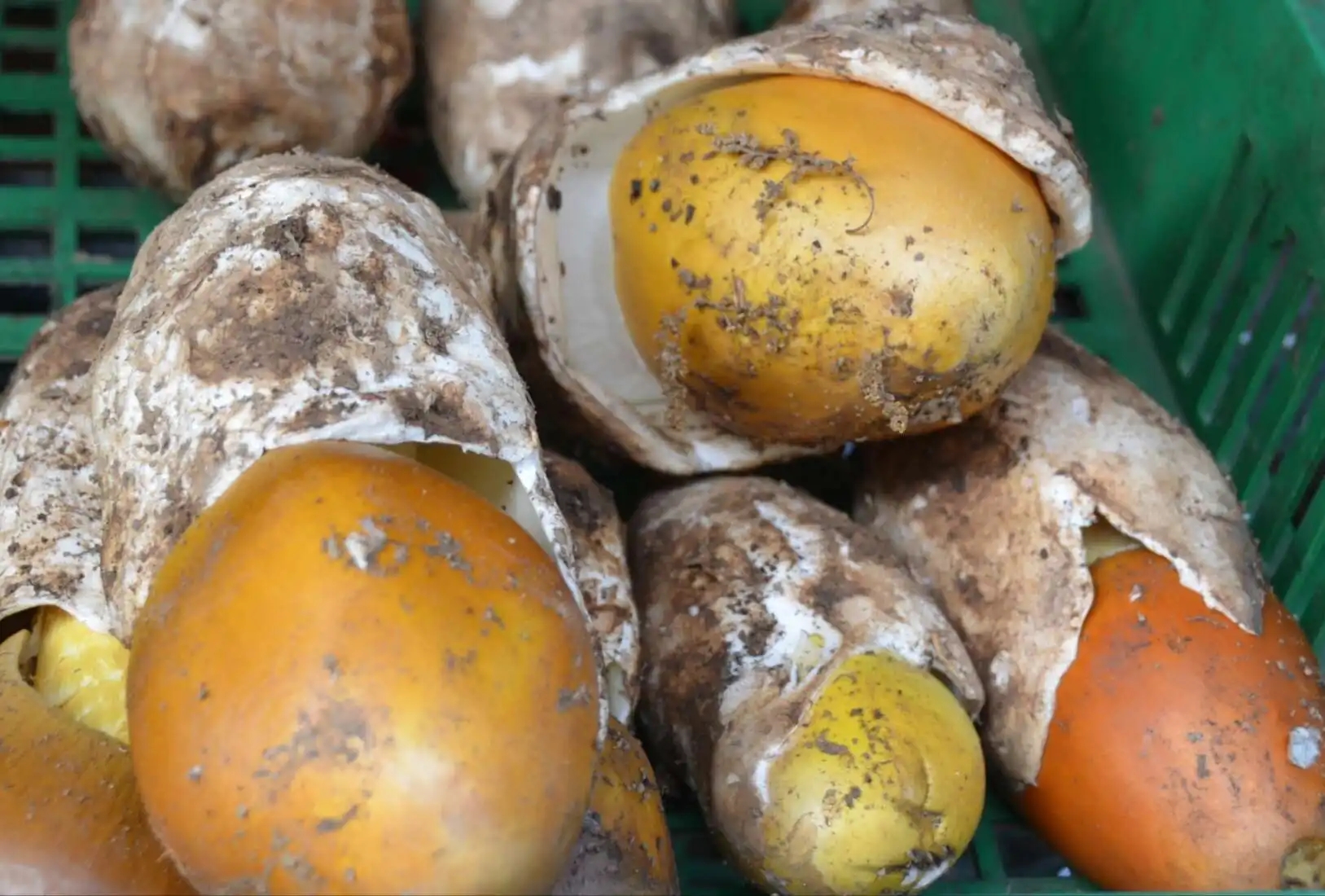 雞蛋菌,又稱橙蓋傘,橙蓋鵝膏菌,黃羅傘,白橙蓋鵝膏菌。因像極了雞蛋而得名。子實體大型,菌蓋形成初期卵圓形至鐘形,后漸平展,中部稍凸起,鮮橙黃色至桔紅色,光滑,粘,邊緣具明條紋。菌肉白色,較厚,菌把圓柱形,淡黃色。菌托大,苞狀,白色,傘未張開時包裹在白色的菌托里很萌,所以有了雞蛋菌的別稱。