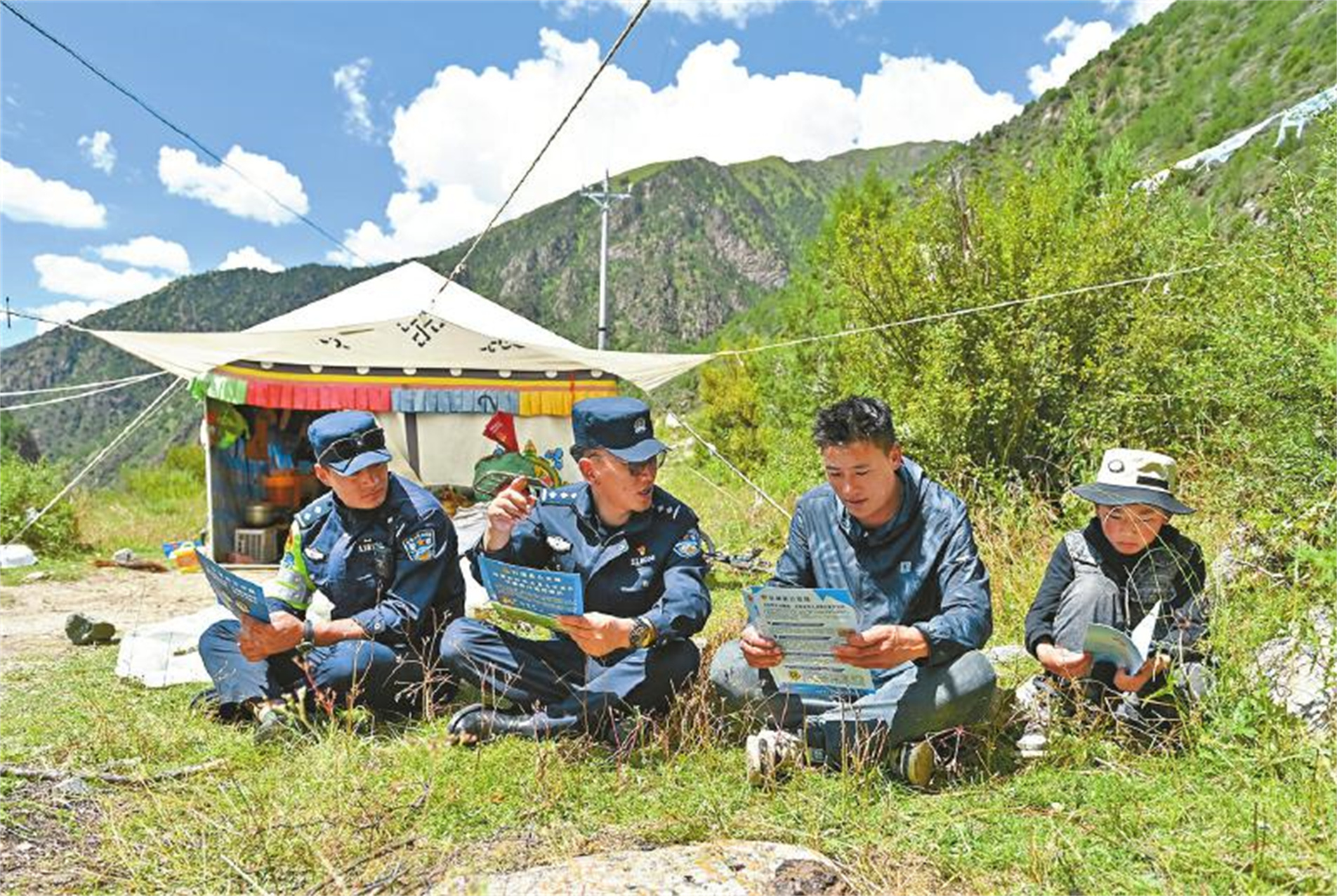 “甲日村有幾戶牧民是前幾天剛遷徙過來的,我們?nèi)ソo他們進(jìn)行一次法治宣講,也去了解下他們有沒有辦理身份證、戶口的需求。他們住在河那邊,出行也不方便?!毖采饺蝿?wù)結(jié)束后,趁著大家吃干糧休整的時(shí)間,登真扎巴對大家說。