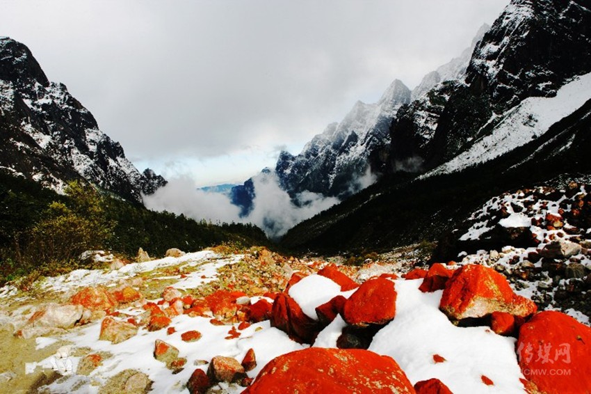 燕子溝最精華的景觀是紅石灘,此處為亞洲最大的紅石灘。石頭上布滿的紅色物質,是一種微生物,在高山特有的生態(tài)環(huán)境內得以繁衍,構成生命與歷史相融共存的奇特景觀。因為沙灘里的石頭都長了一層紅色的苔蘚,就好象沙灘里的石頭都穿上了喜慶的紅衣,使得燕子溝成了顏色的世界。據說只有在空氣質量很好的情況下,這種苔蘚才能夠生存,曾經有研究院的科學家為將這種石頭帶出去研究,結果剛下飛機,發(fā)現(xiàn)石頭上的紅色退了,因為空氣質量不好,導致石頭上的苔蘚無法生存。