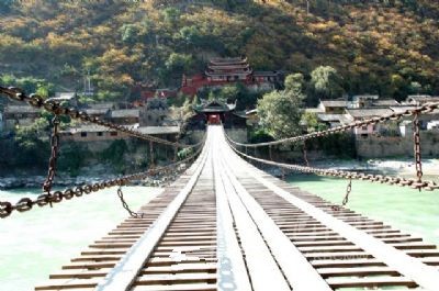 瀘定橋簡(jiǎn)介瀘定橋坐落在瀘定縣城大渡河上,為全國(guó)重點(diǎn)文物保護(hù)單位。該橋始建于清康熙44年,建成于45年(1706年)。康熙御筆題定“瀘定橋”,并立御碑于橋頭。