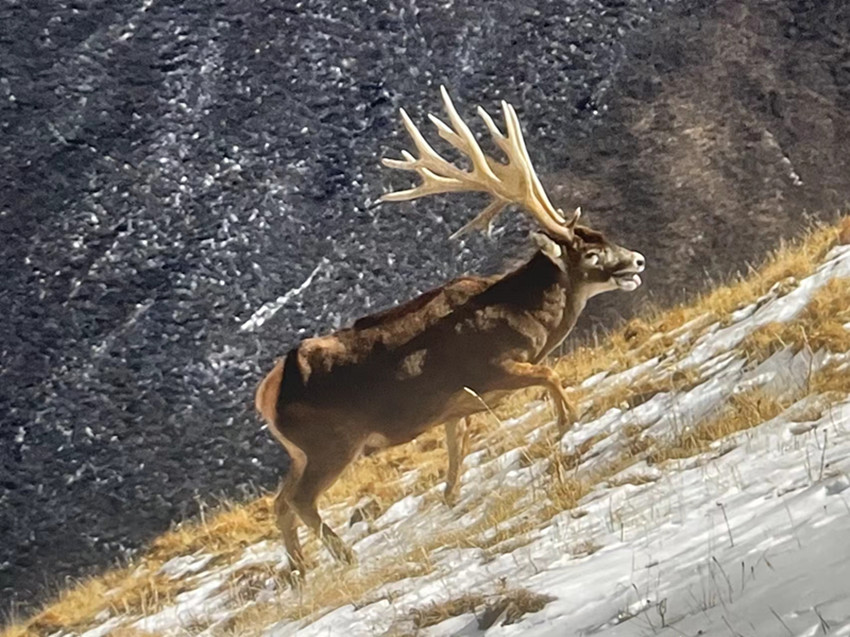 近日,攝影愛好者秋吉洛珠在年龍鄉(xiāng)境內(nèi)的懸崖峭壁上,拍到了近300只巖羊和10只白唇鹿的身影。它們?cè)谇捅谏狡律媳寂堋⒙?、覓食,畫面非常和諧。白唇鹿被列入世界自然保護(hù)聯(lián)盟瀕危物種紅色名錄。隨著近年來全州生態(tài)環(huán)境逐年向好,各類瀕危動(dòng)物數(shù)量也在不斷增加?!把┯蚓`”們得以在此繁衍生息。