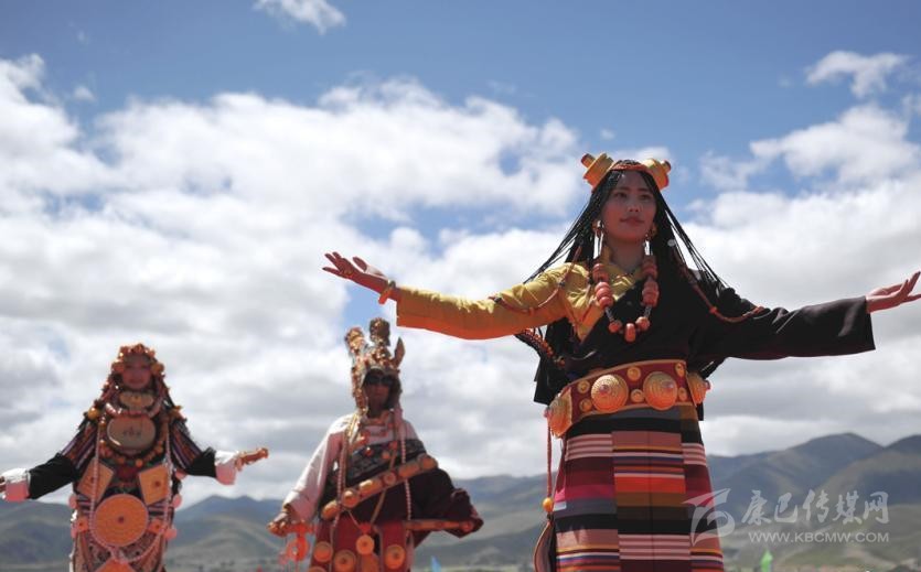 婦女的傳統(tǒng)服裝主是坎肩連衣百折裙。顏色有深絳、深紅、深綠等,上面印著孔雀翎眼彩花,折裙一展如孔雀開屏。上身著彩色襯衫,外套一件齊膝開襟的長衣,其領子、坎肩、大襟、袖口和底邊均鑲有彩色金絲料或水獺皮、豹皮等裝飾,腰間束一條彩帶,腰前圍一面彩色緞圍腰,并佩帶銀制或珊瑚制品等裝飾,同時耳掛金銀耳環(huán),頸戴寶石項珠,手腕戴銀圈、玉圈,手指戴金戒、銀戒,腳穿白色藏靴,顯得艷麗、俊俏、大方。