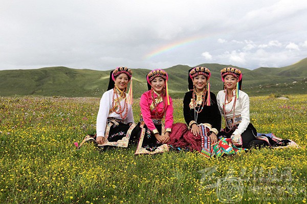 藏族姑娘同漢族姑娘一樣辮一根獨辮子,辮子的根部用紅頭繩扎成約四寸長的發(fā)枕,藏名叫“呷糾”。唯獨不同的是藏族姑娘獨辮子成三角形盤于頭頂,更顯得美觀、大方、素雅。